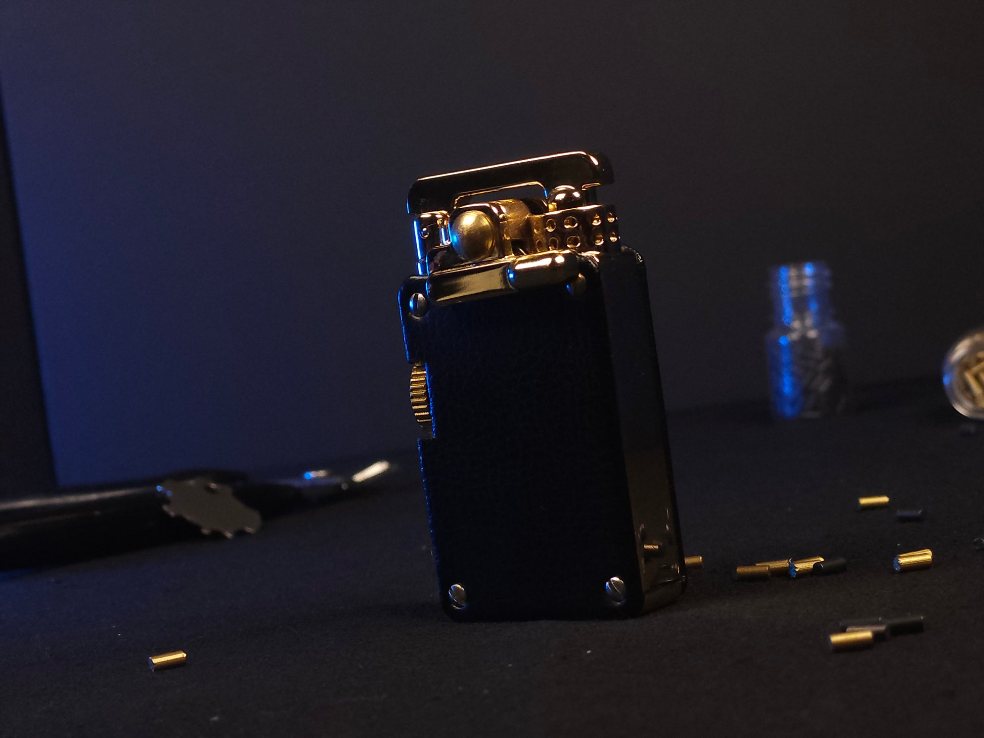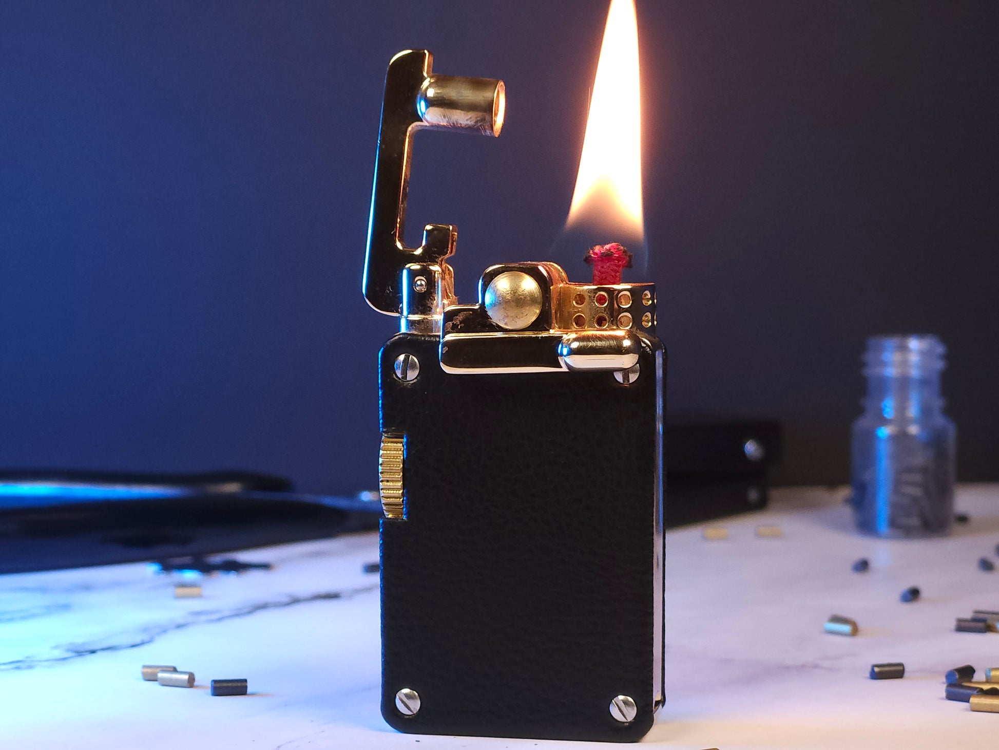 Leather + gold, pulldown ignition, best retention in flint division.Potency: ██████░░░░ (6)Luxury: ██████████ (10)FUEL Retention: █████████░ (9)SOUND: ████████░░ (8)
